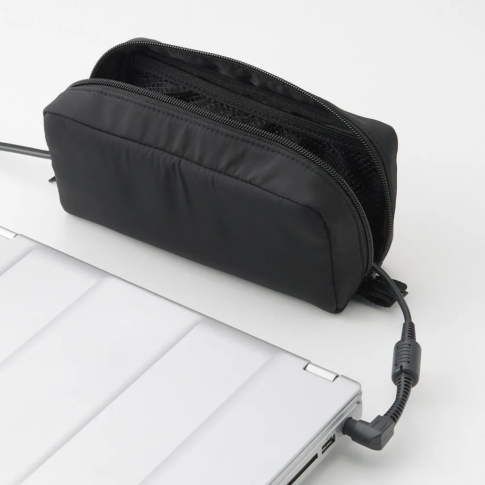 上課已經開始使用平板或筆記型電腦了嗎? MUJI無印良品的聚酯纖維網眼筆記型電腦包可收納3C用品,具有緩衝性的材質可避免與背包中的其他物品碰撞或刮傷。充電線材則可統一收集在聚酯纖維多用途小物收納包中,內層附有固定綁帶,可收捲電源線,使用時可放在收納包中直接連結電腦,維持桌面整齊的同時也避免線材纏繞。